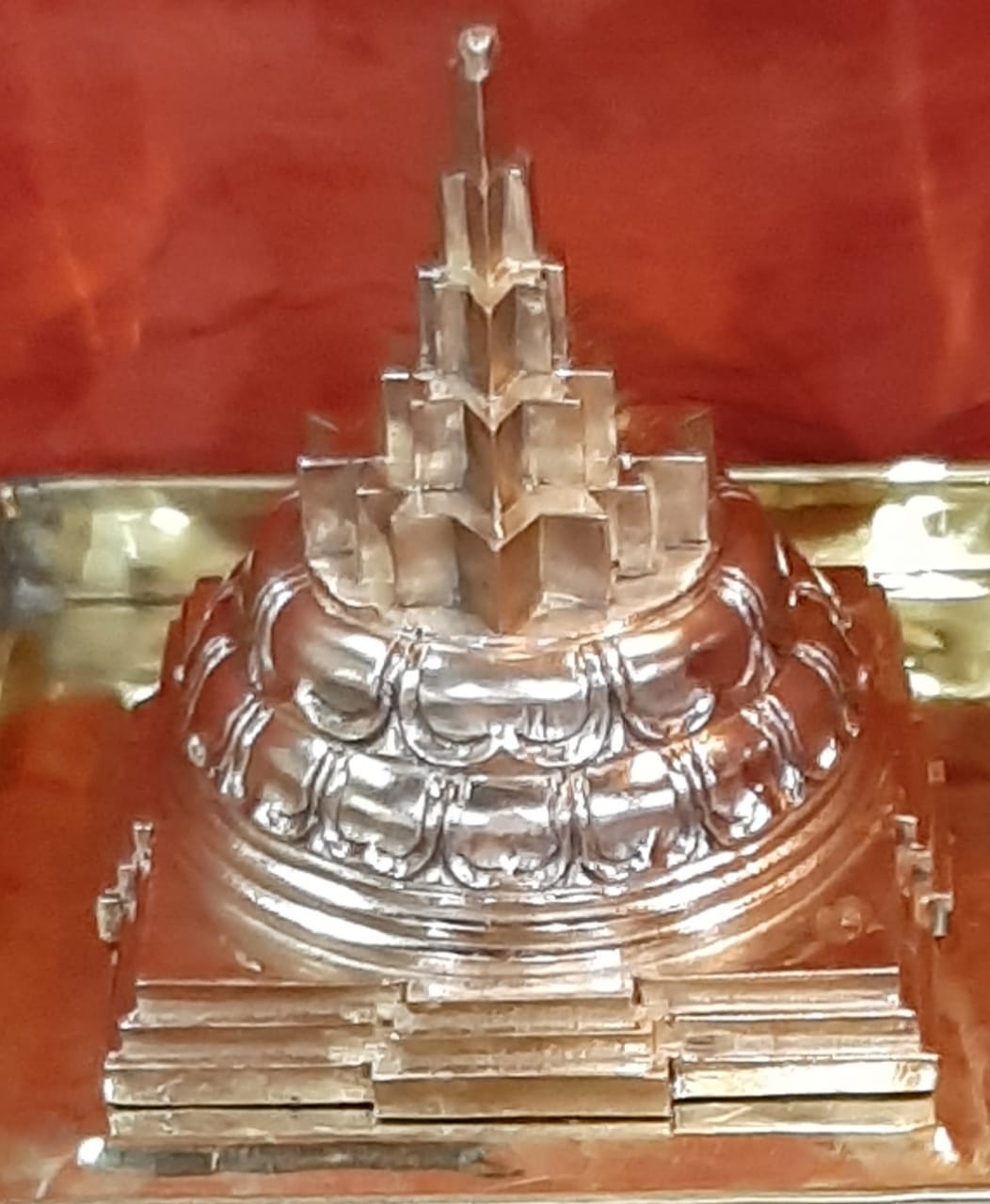 Maha Meru is isometrical view of Sri Chakra Yantra which is fully handmade by Swamiji in different sizes in Pure Panchadathu high quality with fine finishing, fine hand carving, fine polishing with exact vedic geometrical measurements which generates positive energy for flourishing wealth health and brings all success in life drives away all evil power, enemies, black magic which brings KuberLakshmi vasasthalam in your Pooja room with spiritual divine power.
